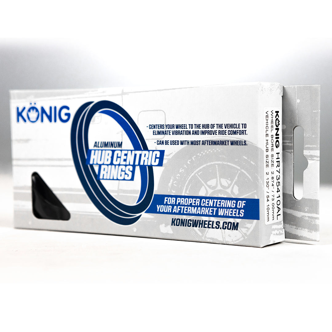 - Set of 4 aluminum hub rings (73.1mm O.D. to 54.1 mm ID)