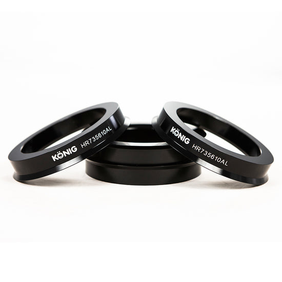 - Set of 4 aluminum hub rings (73.1mm O.D. to 56.1 mm ID)