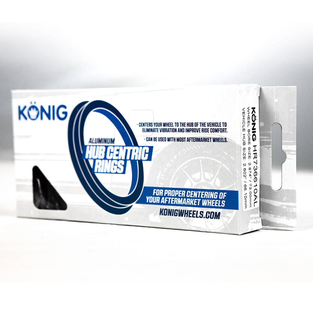 - Set of 4 aluminum hub rings (73.1mm O.D. to 66.1 mm ID)