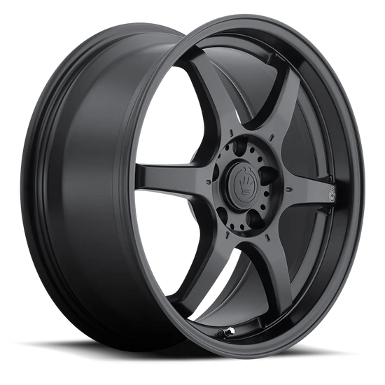 The Backbone is a solid 6-spoke wheel featuring Konig’s unique dual lightning hole PCD and comes in full matte black
