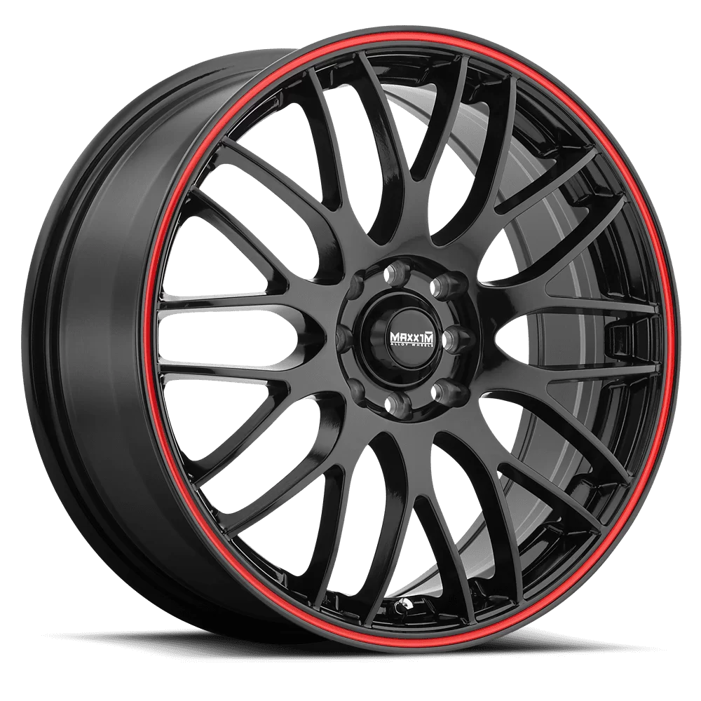 The Maxxim Maze is a classic and timeless Mesh wheel that is offered in 15″ through 18″ in Gloss Black with Red Stripe or Silver with Full Machine Face.